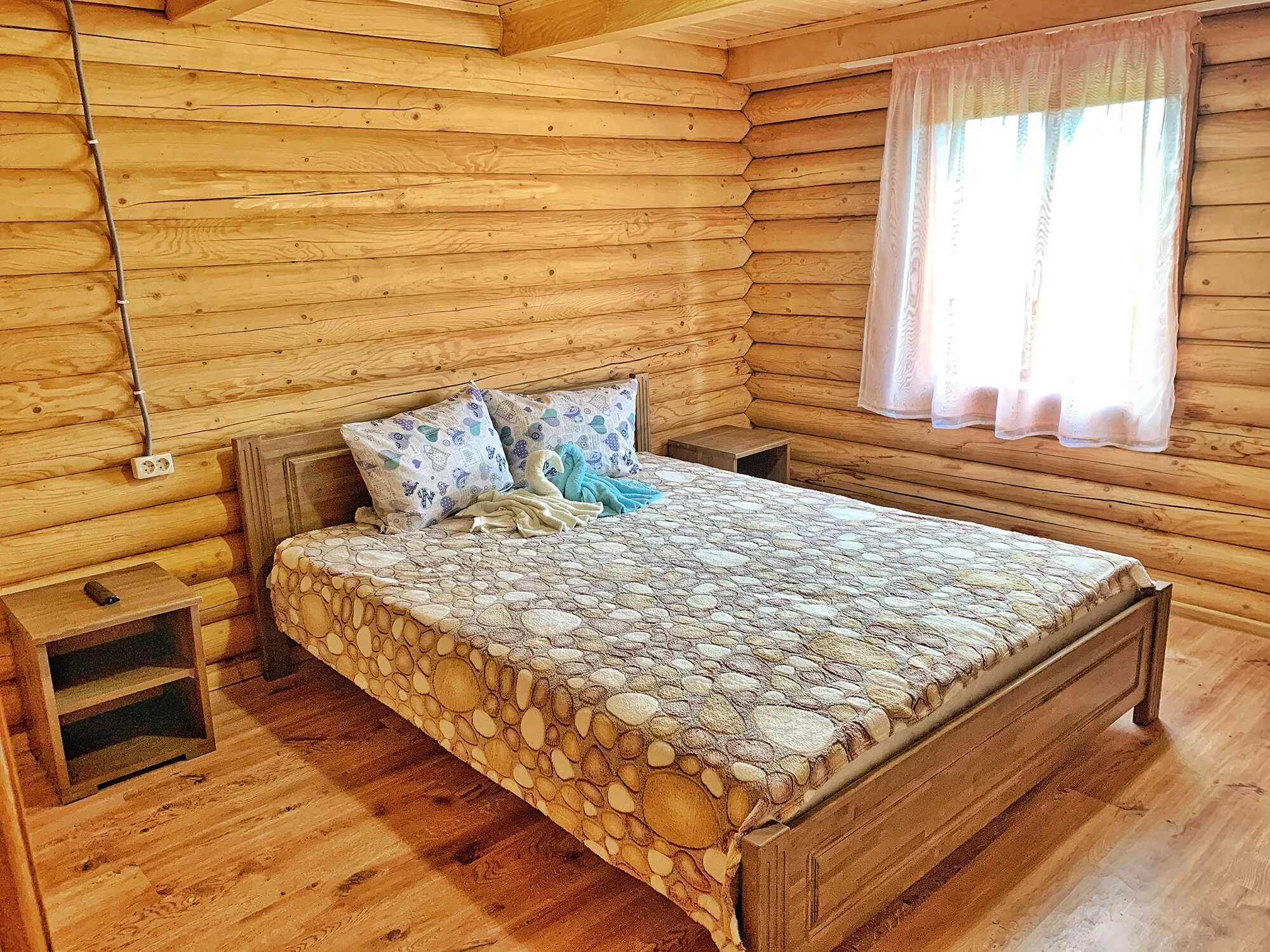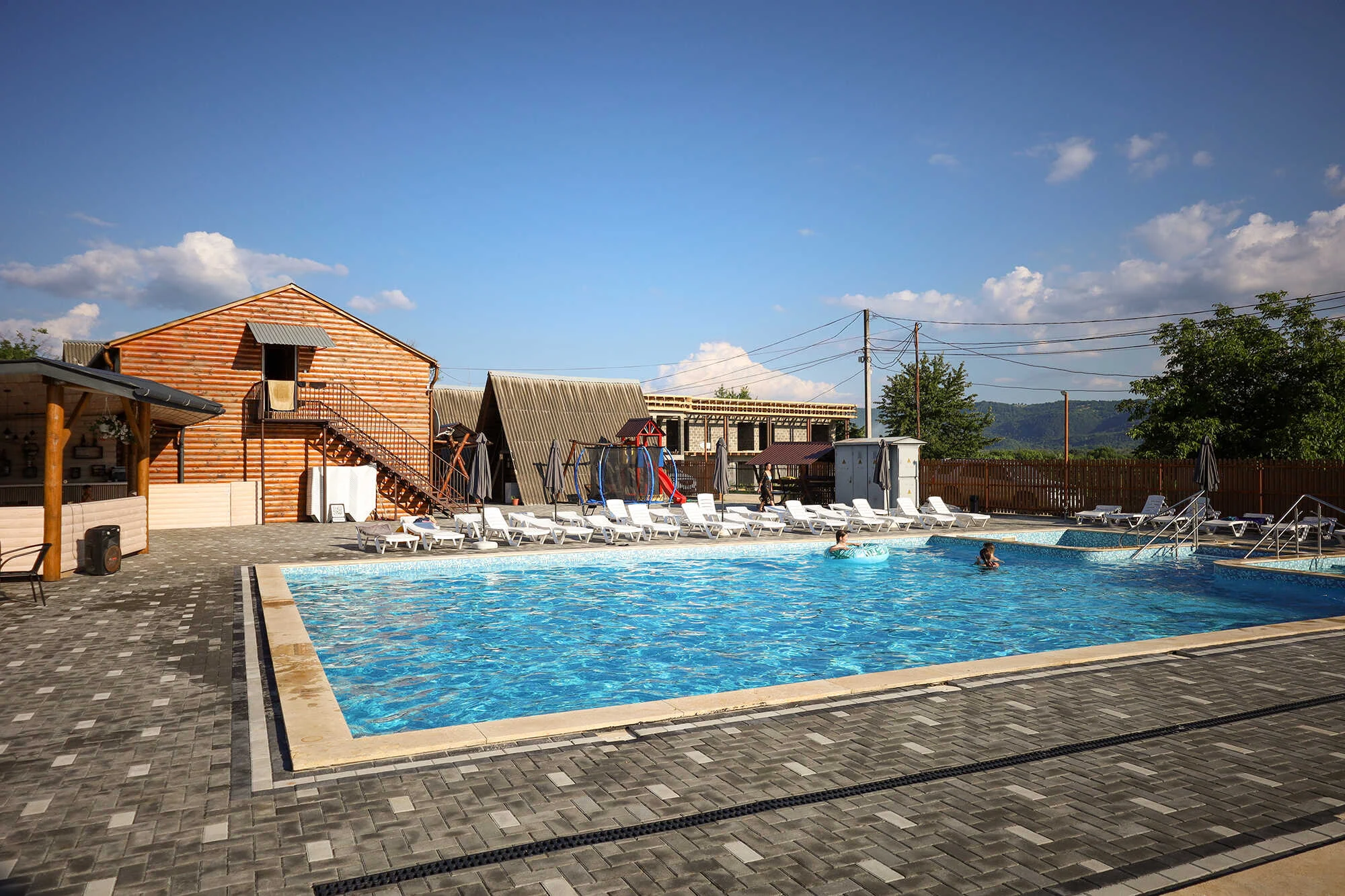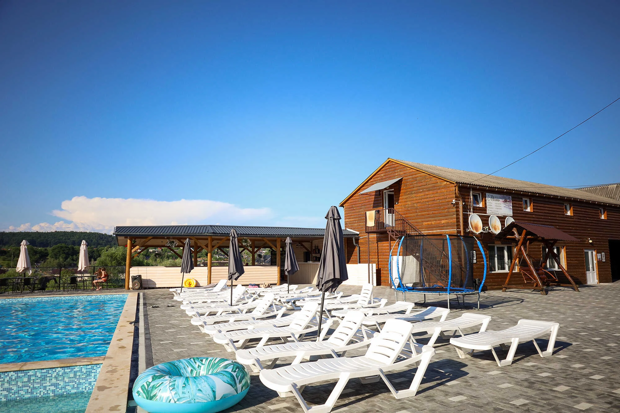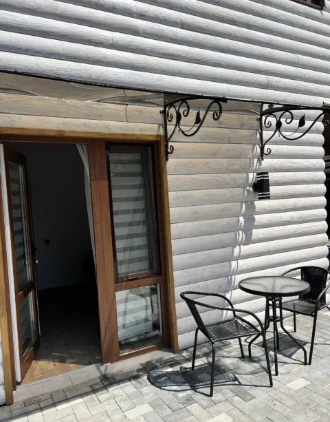 На території : три альтанки, мангали, дитячий майданчик. Номерний фонд: 4 дерев’яні будиночки – 4-х місних економ у будиночку – 8 номерів, 3-х місних економ у будиночку – 4 номера, 2-х місний стандарт у першому корпусі – 2 номера, у другому корпусі – 2 номера , номера 3-х місні стандартні – 6 номерів, 2-х місний напівлюкс – 2 номера, 3-х місний напівлюкс – 1 номер, 6-ти місний економ – 1 номер.