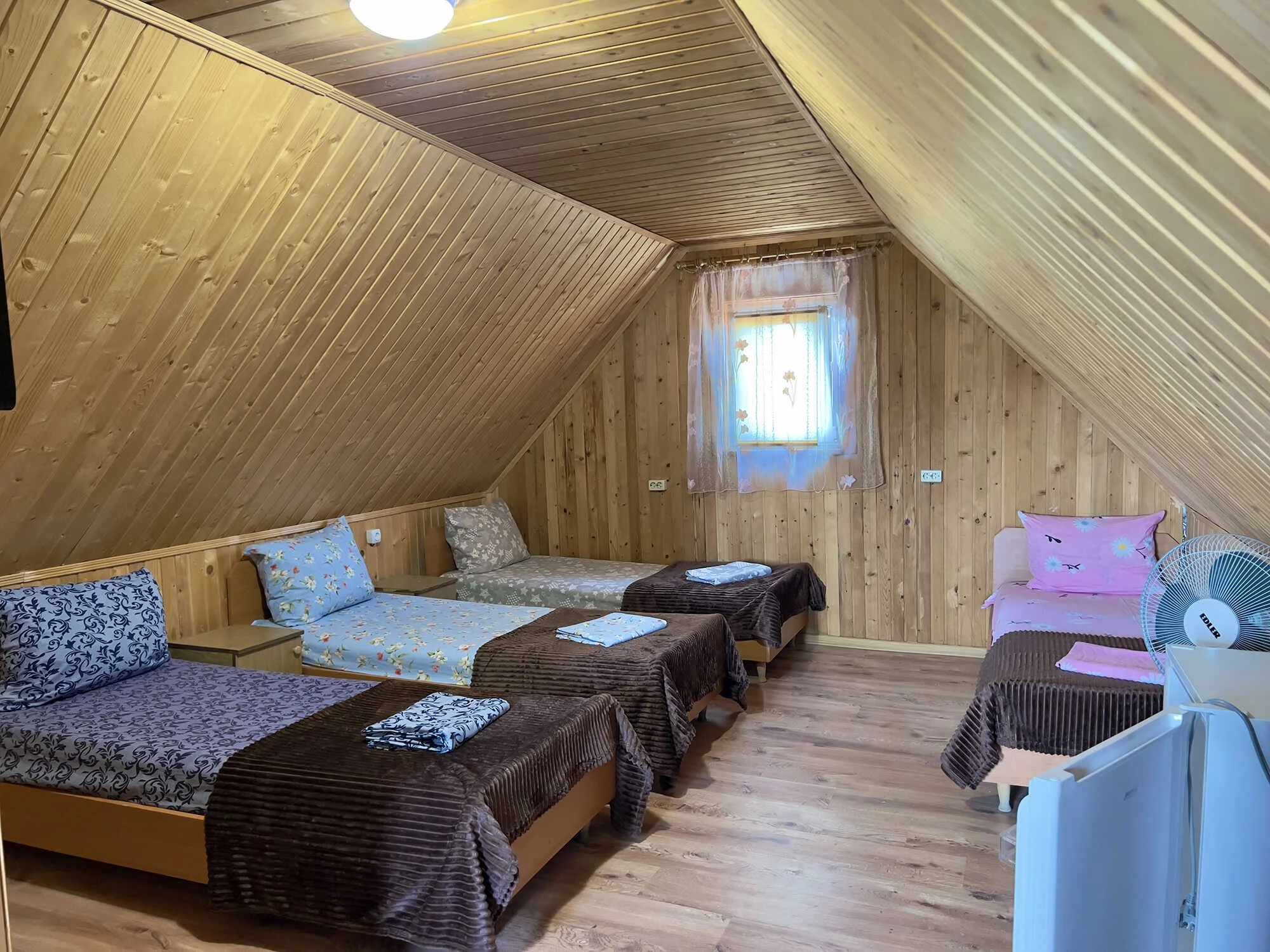 База відпочинку "Мілана" пропонує для проживання 3-х місний економ у будиночку В номері ( 3 односпальні ліжка , тумбочкі та