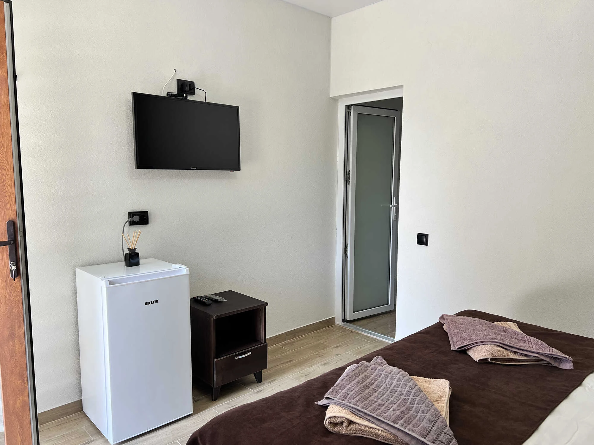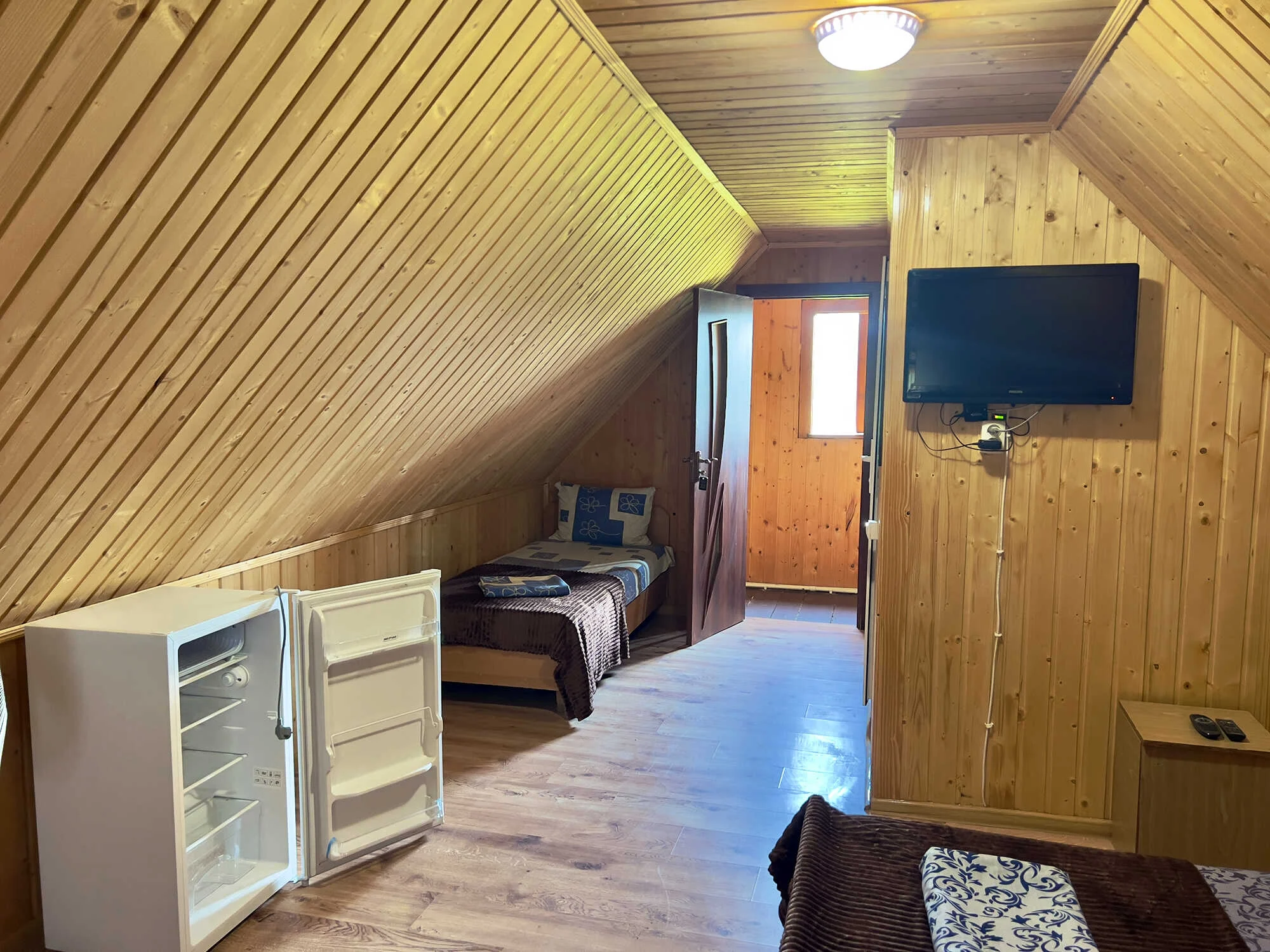 База відпочинку “Мілана” пропонує для проживання Напівлюкс 3-х місний В номері: телевізор та холодильник , душ та санвузол загальний на