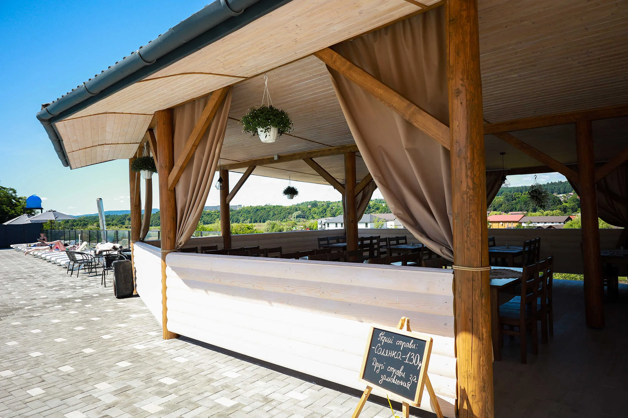 Харчування : страви закарпатської та європейської кухонь чи їжа на замовлення. Є можливість готувати самостійно (посуд для користування, неподалік – магазин). Є мангал. Паркінг, виклик таксі. Інтернет Wi-Fi.
